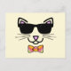 Illustration of a cat, pink nose and ears, wearing a pair of super cool sunglasses and a cute, rainbow colored bowtie! Add background color of your choice, this design works well on most light color backgrounds.