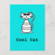 Hip and cool design of a cartoon cool cat with square dark sunglasses. This cute cartoon graphic is hipster grunge mod style against a stylish modern sky blue background.