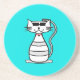 Hip and cool design of a cartoon cool cat with square dark sunglasses. This cute cartoon graphic is hipster grunge mod style against a stylish modern sky blue background.