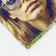 Beautiful women in sunglasses with reflections of their settings such as mountains, beach, musical concert, garden and other random scenes.