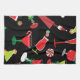 Cool and festive retro inspired pattern featuring peppermints and assorted holiday spirits in festive glasses on a black background.