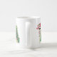 A mug with a funny illustration. A cute llama wearing black sunglasses and a red santa hat. Standing behind a Christmas tree with festive presents. The word Joy written above his head in a colorful holiday font. Whimsical and fun Christmas themed design.
