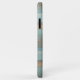 Classy, fun, contemporary mocha brown, beige, teal blue-green, and gray striped watercolor pattern design on faux leather texture background. Room for customization or personalization with a name, monogram, or initials of your choice. A stylish, original, and cool cover for the savvy, art-loving hip trend who wants to protect their phone from dust, dirt, and wear and tear. Available on a variety of decorative, fashionable, artistic, trending, modern, and cool iPhone 6,7 8, X, XR, 11, 12, 13 Mini, 14, 15 Plus, Max cellphone cases. Show off your style, look fashionable, and feel stylish with a unique design on a mobile device accessory of your choice.