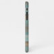 Classy, fun, contemporary mocha brown, beige, teal blue-green, and gray striped watercolor pattern design on faux leather texture background. Room for customization or personalization with a name, monogram, or initials of your choice. A stylish, original, and cool cover for the savvy, art-loving hip trend who wants to protect their phone from dust, dirt, and wear and tear. Available on a variety of decorative, fashionable, artistic, trending, modern, and cool iPhone 6,7 8, X, XR, 11, 12, 13 Mini, 14, 15 Plus, Max cellphone cases. Show off your style, look fashionable, and feel stylish with a unique design on a mobile device accessory of your choice.