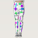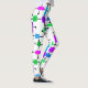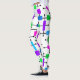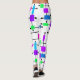 These leggings have a mid-century modern design of a grid made of horizontal and vertical black lines with rectangles in various vibrant shades of green, blue, and purple.