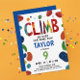 Cool Colorful Blue Rock Climb Adventure Birthday Invitation