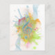 Cool colourful watercolour splatters music notes blue treble clef white faded swirls dots half tone circle lines, pink orange yellow green blue colours white background image print
