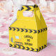 Cool custom construction excavator birthday party favor box for a child who loves yellow construction vehicles in black and yellow. Fun vehicle design for a little boy who loves cars and trucks. Customize with your kid's name between the black and yellow caution tape.