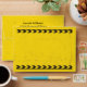 Cool custom construction excavator birthday party envelope for a child who loves yellow construction vehicles in black and yellow. Fun vehicle design for a little boy who loves cars and trucks. Customize with your kid's return address on the back. The front has two lines of black and yellow caution tape.