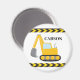 Cool custom construction excavator magnet for a child who loves yellow construction vehicles in black and yellow. Fun vehicle design for a little boy who loves cars and trucks. Customize with your kid's name under the black and yellow caution tape.