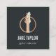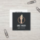 Unique square business cards for guitar instructors, music teachers, guitar lessons, musicians or guitar players voice actors or actresses, voiceover artists, vocal talent, and audio recording professionals feature an electric guitar headstock in faux copper foil on a soft black background, with two lines of custom text in white lettering. Customize the back with your full contact details, displayed beneath a smaller matching headstock illustration. Whether your specialty is classical, acoustic, electric, or bass, these modern and professional business cards are a perfect way to gain clients and brand your business!