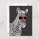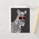 Cool cute funny zebra white sketch with glasses postcard