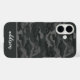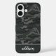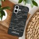 Cool camo print phone case features an allover camouflage pattern in shades of dark olive green for an updated take on the camo trend. Personalize with a name along the bottom in white calligraphy script lettering.