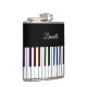 Cool Dark Psychedelic Piano Keyboard Music Flask. Rainbow colored piano dark keys against white with your name or custom text makes a festive piano player's flask that says "I play music" in style. Fill in your name at the prompt to personalize and customize as desired. A great gift for your favorite pianist, musician or music lover.