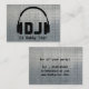 A cool dj logo cartoon businesscard template. A stunning design with dj headphone cartoon and the text dj on a metallic background comined with the logo of a abstract headphone. a good dj buisnescard.