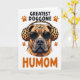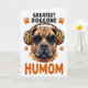 This design shows a wrinkly, fawn-colored dog head centered on a bright white background, giving the scene a fresh, open look. Dark sunglasses cover its eyes, and the dog’s relaxed mouth and lifted chin suggest a confident, friendly attitude that feels like a little wink of affection ❤️. Over its head sits a chunky pair of headphones, and both the headphone band and the sunglass frames are covered in a leopard-style pattern for a fun, fashion-forward touch. The illustration uses crisp outlines and soft shading to bring out the folds and contours of the face, adding character without making the image feel busy. At the top, the phrase “GREATEST DOGGONE” appears in thick black letters, broken up by four small orange paw prints that add a sweet, loyal tone 🌼. Beneath the dog, the word “HUMOM” is set in thick orange letters, balancing the top line and tying into the warm fur tones. The warm browns and oranges stand out strongly against the white space, keeping the focus on the dog and the message. The paw prints are bright orange and sit between the words above the dog’s head.