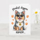 Designed with a white background, this digital illustration features a stylized tricolor dog facing forward, with soft gray-blue, warm tan, and bright white fur that feels friendly and inviting ❤️. The dog wears dark sunglasses with a spotted pattern, giving it a confident look that reads like a fun inside joke between close friends. Around its neck sits a thick gold-toned chain with a round medallion, and the dog’s open grin and pink tongue add a flirty, lighthearted energy. Scattered orange paw prints float around the figure, like little traces of affection following it across the page. Near the top, a flowing calligraphy-style message reads “greatest doggone” in dark lettering, centered above the dog. Near the bottom, the word “HUMOM...” appears in all caps, also in dark text, spaced to sit neatly beneath the face, with a 🌼 tucked into the overall cheerful layout. The sunglasses are glossy black with small light spots, and the paw prints are a bright orange sprinkled around the dog’s head and shoulders.
