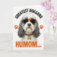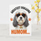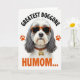This greeting card features a digital illustration of a shaggy grey-and-white dog facing forward on a white background, wearing oversized rectangular sunglasses with orange frames and dark lenses for a cool, friendly look ❤️. Long wavy fur frames its face, and the relaxed pose suggests a close bond, like it’s posing proudly for someone it adores. Around its neck is a brown collar with a shiny gold-toned, bone-shaped tag that adds a tender, gift-like detail. At the top, the text “GREATEST DOGGONE” curves above the head in black uppercase letters. Near the bottom, “HUMOM...” appears in orange uppercase letters, echoing the sunglasses and adding a warm pop of color 🌼. Two small orange paw prints sit to the left and right of the lower text, balancing the layout. The orange accents stand out against the white space, keeping the focus on the dog’s face and the lettering. The final detail is the dark lenses that cover the dog’s eyes, set beneath the arched black headline.