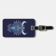 Cool dragon fantasy luggage tag with an original art illustration of a blue dragon head with large horns.