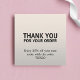 Elegant fully customizable thank you card coupon template. Cool design with faux silver background and bold black fonts.