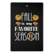 Cute little brown pumpkin, mushroom, and rainboots illustrations and the big text: Fall is my favorite season.