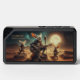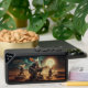 These Fennec foxes know how to rock! Add a touch of whimsical nature to music with this bluetooth speaker, which features an AI-generated steampunk-styled trio of fennec foxes wearing outlaw attire and serenading an unseen audience with their acoustic guitar and a retro microphone during a midnight gig in the desert.
