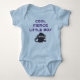 A trendy one-piece for a brave newborn baby boy with the custom words "Cool Fierce Little Boy" (© Mira) in a modern, stylish font, and a funny, cute cartoon ninja monkey baby. I designed it specifically for a little fighter who struggled after birth with some health condition. The romper is now blue, but you can choose a different color or white.