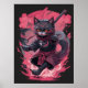 Cool Fire and Smoke Black Ninja Cat Warrior Poster