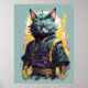 Cool Fire Splash Gray Ninja Cat Warrior Poster