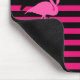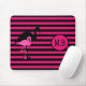 Vibrant pink and black stripes with cool flamingo silhouette design on monogrammed mouse pad.