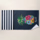 Cool Floral Pineapple Nautical Navy Blue Striped Beach Towel