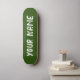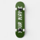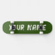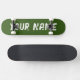 Skateboard deck featuring a rich forest green design with customizable name space. Perfect for street skating, tricks, or as a stylish and personalized gift for skateboard enthusiasts.