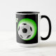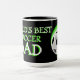 Unique, funny, colorful, contemporary and decorative mug for coffee, tea, milk, or juice. With image of soccer ball on a black and green colored background. And "World's Best Soccer Dad" quote. Cute and fun dad's birthday present, Father's day, or Christmas gift. A cool and original mug for the worlds greatest and best dad.