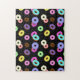 Cool fun colorful donuts pattern black jigsaw puzzle