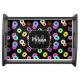 Cool fun colorful donuts pattern black Monogram Serving Tray