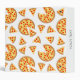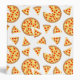 Cool and fun pizza slices pattern on white for birthday pizza party. Juicy vector made pizza with crunchy crust, cheese, salami, champignon mushrooms, olives and a sprinkle of oregano.