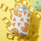 Cool and fun pizza slices pattern on white for birthday pizza party. Juicy vector made pizza with crunchy crust, cheese, salami, champignon mushrooms, olives and a sprinkle of oregano.