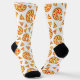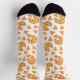 Cool and fun pizza slices pattern on white Socks for birthday pizza party. Juicy vector made pizza with crunchy crust, cheese, salami, champignon mushrooms, olives and a sprinkle of oregano.