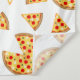 Cool and fun pizza slices pattern on white for birthday pizza party. Juicy vector made pizza with crunchy crust, cheese, salami, champignon mushrooms, olives and a sprinkle of oregano.