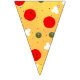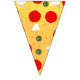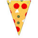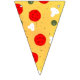 Pizza party Party Supplies indoor or outdoor Décor Banners Bunting Flags to celebrate kids birthday. Juicy vector made pizza with crunchy crust, cheese, salami, champignon mushrooms, olives and a sprinkle of oregano.