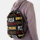 Cool fun pizza pepperoni cheese crust text pattern drawstring bag