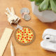 Juicy vector made pizza with crunchy crust, cheese, salami, champignon mushrooms, olives and a sprinkle of oregano.