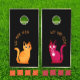 Bring laughter and fun to your backyard gatherings with our Funny Cornhole Set, designed especially for cat lovers! This unique set features vibrant orange and magenta cats against a sleek black background, making it a standout addition to any party or family event. The set comes with two phrases: 'Cat Mom Team' and 'Cat Dad Team,' printed in eye-catching orange text. These texts are fully customizable, allowing you to replace them with your names or any other phrase that celebrates your love for your feline friends. It's the perfect way to add a personal touch to your game and show off your team spirit.