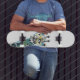 Cool funny trendy giraffe with glasses, earphones skateboard deck