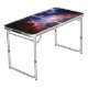 Not that I've had experience to buy that many beer pong or ping pong tables in my life, but I know a good quality product when I see it! This beer pong table is sturdy and solid and still lightweight enough to be portable. It folds and unfolds smoothly for easy storage or setup. From order to arrival here, the time was half of what was estimated, and that was during the holiday season. And -- most importantly -- the recipient LOVED it! I would definitely purchase this product again or other products by the maker Hampton Technologies , should an occasion to do so arise. The printing is beautiful! The blues and reds are deep and rich and the white "chalk look" is clean and crisp,. The photo (taken in low light) doesn't really do it justice. We know it's printed, but take a step back, and it really does look like chalk on a blackboard. To get the blue background like we did (instead of the traditional green chalkboard background), use background color #26306A. :)