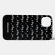 Awesome custom gaming iPhone 13 case with a cool video game controller and headphone pattern for a gamer. Personalize with a name in white on the black phone case.