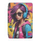 cool girl, wearing sunglasses and headphones, street art, colorful, tomboy