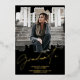 Cool photo brushstroke, Modern and simple Black and real gold foil graduate script open house photo graduation. Add 4 of your favorite photos with an a modern and abstract brushstroke style font and photo grid collage.
