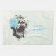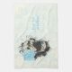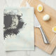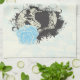 Cool gothic skull and blue rose custom kitchen towel. A cool vector design, featuring a skull with some flourish swirls and halftone elements in black and a rose in blue. There is a pale rose on the background and some text in a vintage font. It is customizable and you can change text and font.