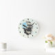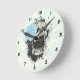 Cool gothic skull and blue rose custom wall clock. A cool vector design, featuring a skull with some flourish swirls and halftone elements in black and a rose in blue. There is a pale rose on the background. It is customizable and you can add text.
